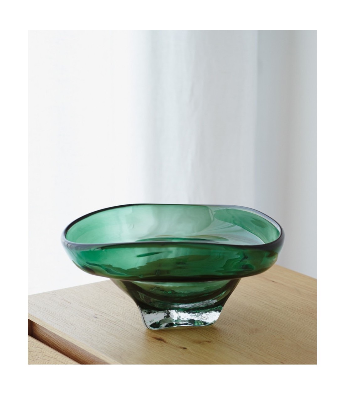 El centro de vidrio Erea está diseñado con líneas orgánicas y fluidas que reinterpretan los clásicos centros de mesa, aportando modernidad y atractivo visual. Su elegante color verde interactúa con la luz, creando reflejos y matices que enriquecen la decoración sin romper la armonía del conjunto. Perfecto para colocar en mesas, aparadores o rincones especiales, se convierte en un elemento decorativo que aporta frescura, carácter y un punto de diseño distintivo a cualquier espacio.