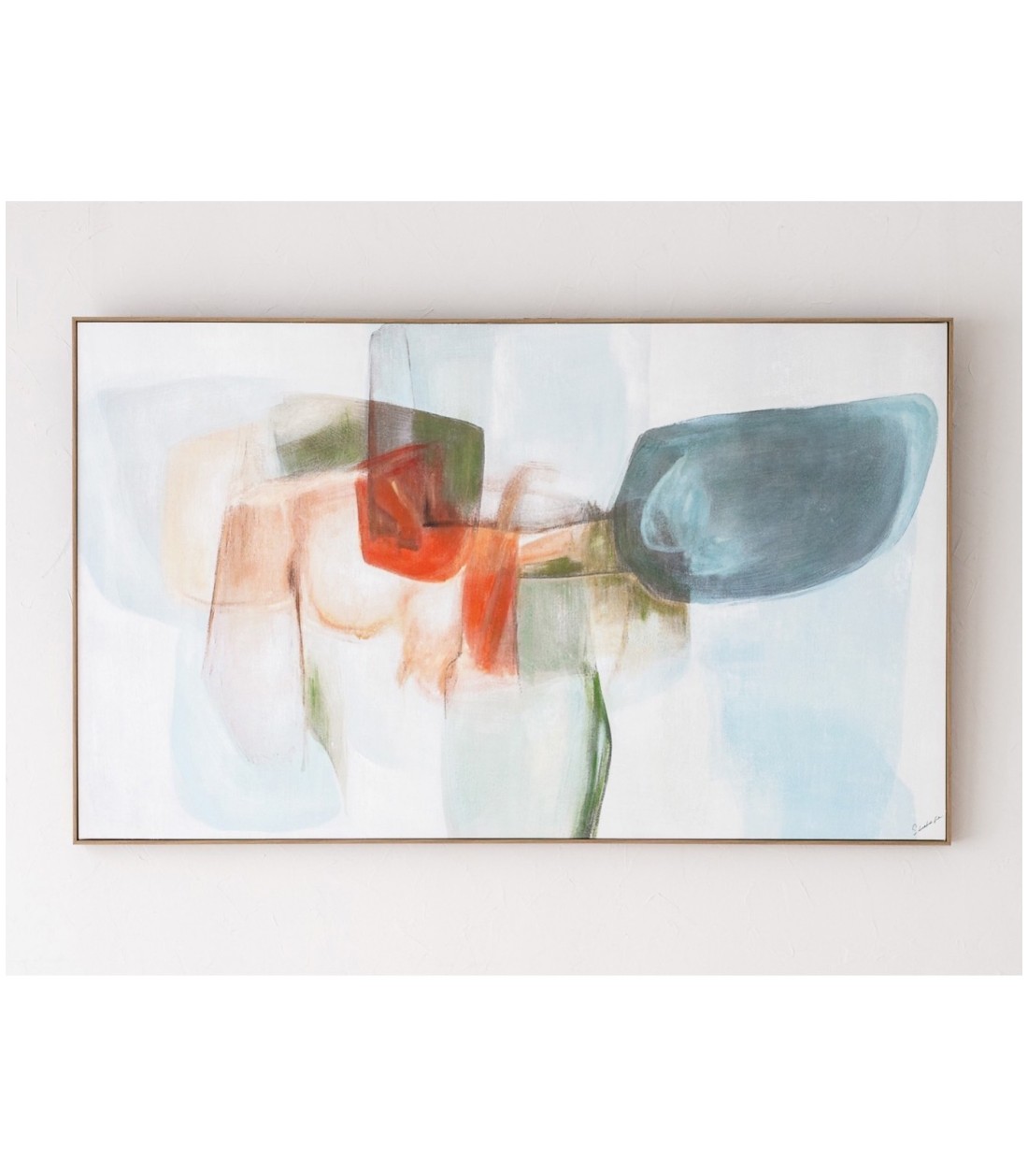 El cuadro abstracto Alegra N5 es una obra realizada a mano sobre lienzo que combina tonos blancos, azules, verdes y naranjas superpuestos, creando una composición armoniosa y luminosa. La interacción de los colores genera movimiento y una sensación de frescura que aporta una nota de color sutil al espacio, convirtiendo la pieza en un elemento decorativo elegante y versátil. El marco en tono natural realza los matices de la pintura y facilita su integración en ambientes contemporáneos, modernos o minimalistas. Perfecto para salones, dormitorios, oficinas o cualquier espacio que busque un toque artístico que aporte luz y vitalidad.