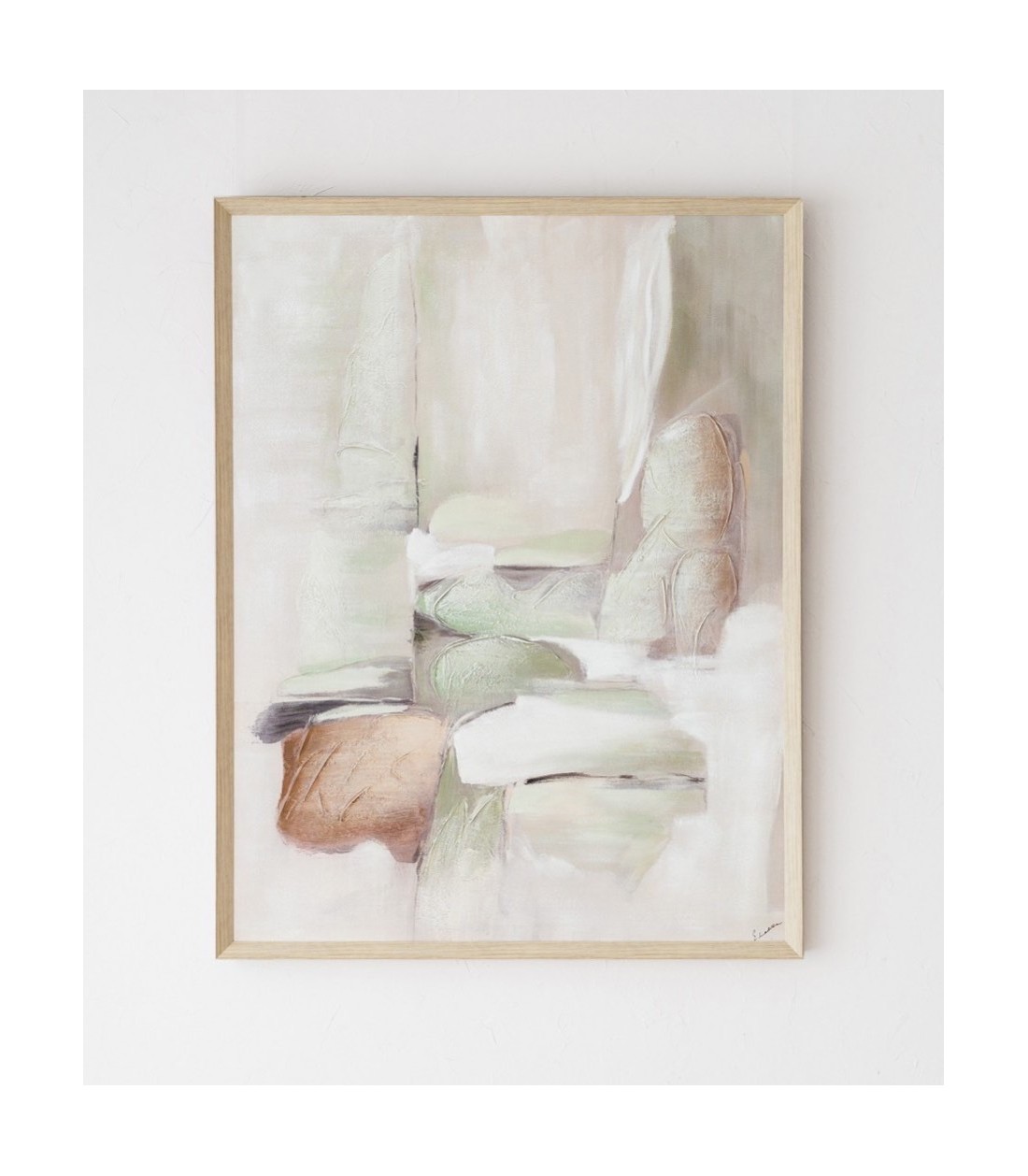 El cuadro abstracto Oli N2 es una obra pintada a mano sobre lienzo que combina tonos verde oliva, beige, ocres y marrones aplicados para generar textura y relieve, aportando profundidad y dinamismo a la composición. Cada pincelada contribuye a crear un efecto visual envolvente y sofisticado, convirtiendo la pieza en un elemento decorativo distintivo. El marco en tono natural completa la obra, resaltando los matices de la pintura y permitiendo integrarla con armonía en ambientes contemporáneos, modernos o de inspiración natural. Ideal para salones, dormitorios, oficinas o cualquier espacio que busque un toque artístico con carácter y calidez.