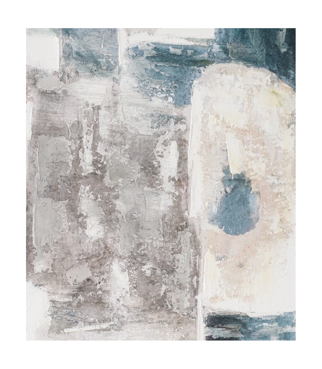El cuadro abstracto Orna es una obra pintada a mano sobre lienzo que combina tonos beige, blancos, grises y verdes, aplicados con texturas gruesas en algunas zonas y suavizadas en otras, creando formas y relieves que aportan dinamismo y carácter a la pieza. Esta técnica confiere profundidad y personalidad al lienzo, convirtiéndolo en un elemento decorativo que transforma cualquier ambiente. El marco en tono natural completa la obra, resaltando los matices de la pintura y facilitando su integración en espacios contemporáneos, modernos o minimalistas. Perfecto para salones, dormitorios, oficinas o cualquier lugar que busque un toque artístico distintivo y elegante.