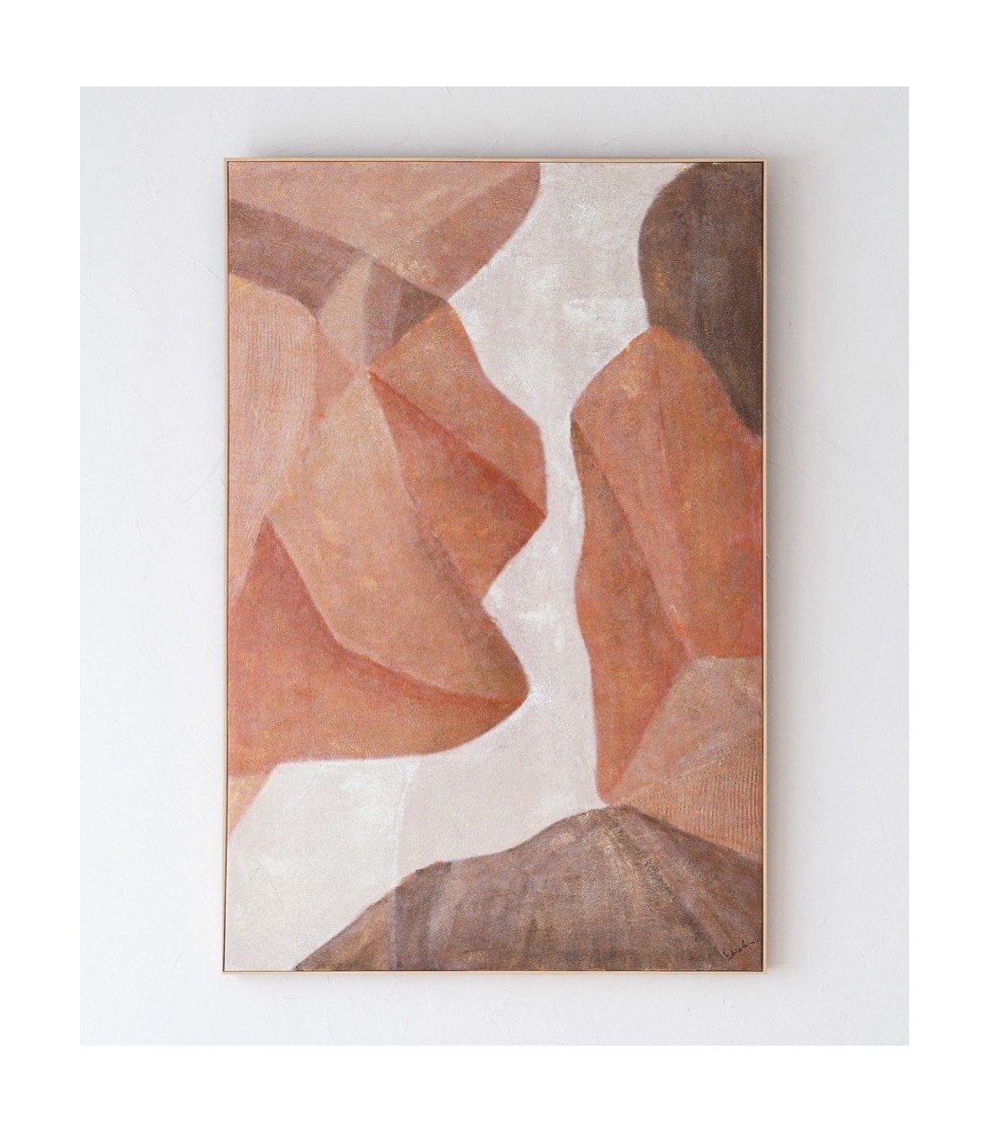El cuadro abstracto Sombras en Ocre N1 es una obra pintada a mano sobre lienzo que combina tonos ocres y blancos superpuestos para crear formas y volúmenes que aportan textura y sensación de movimiento. Cada trazo transmite dinamismo y personalidad, convirtiendo el lienzo en un elemento artístico capaz de transformar cualquier espacio. El marco en acabado natural resalta los colores y la composición, integrando la pieza con armonía en ambientes contemporáneos, modernos o de estilo minimalista, aportando un toque distintivo y sofisticado a salones, dormitorios, oficinas o espacios creativos.