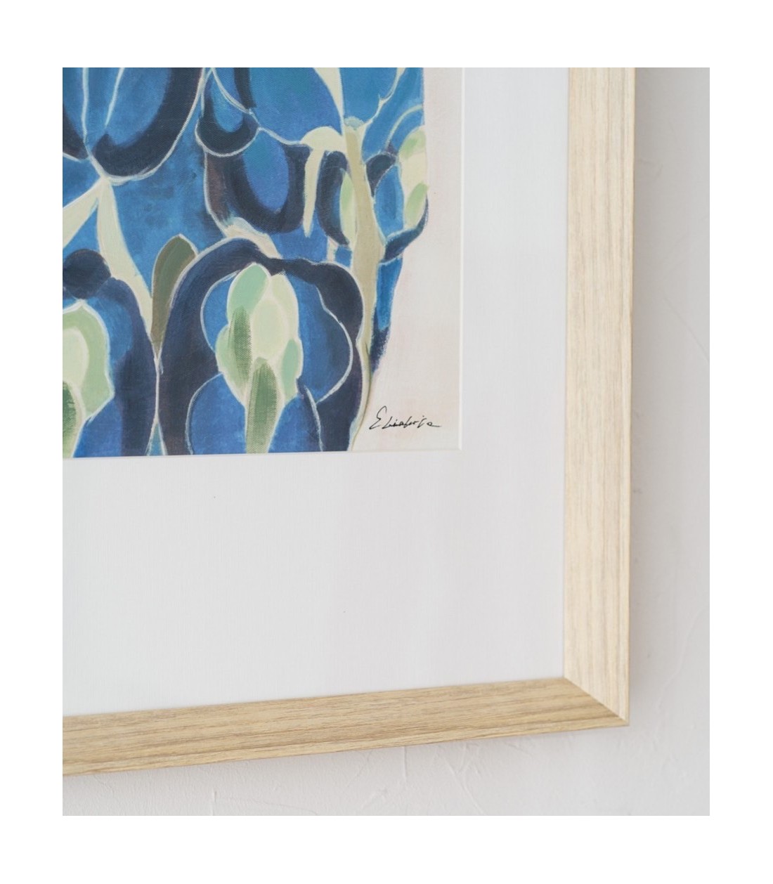 Cuadro Mujer Oriente N3, pintura a mano sobre lienzo con motivo central de mujer de inspiración oriental en azules y verdes, fondo beige texturizado, enmarcado en cristal y madera natural, ideal para aportar elegancia y color al espacio.