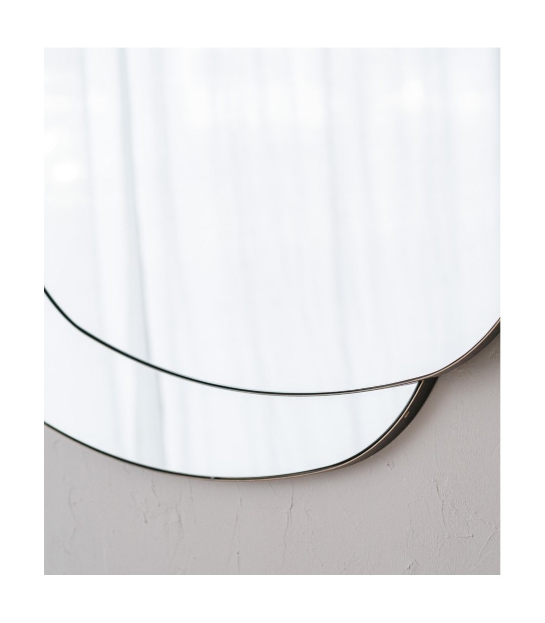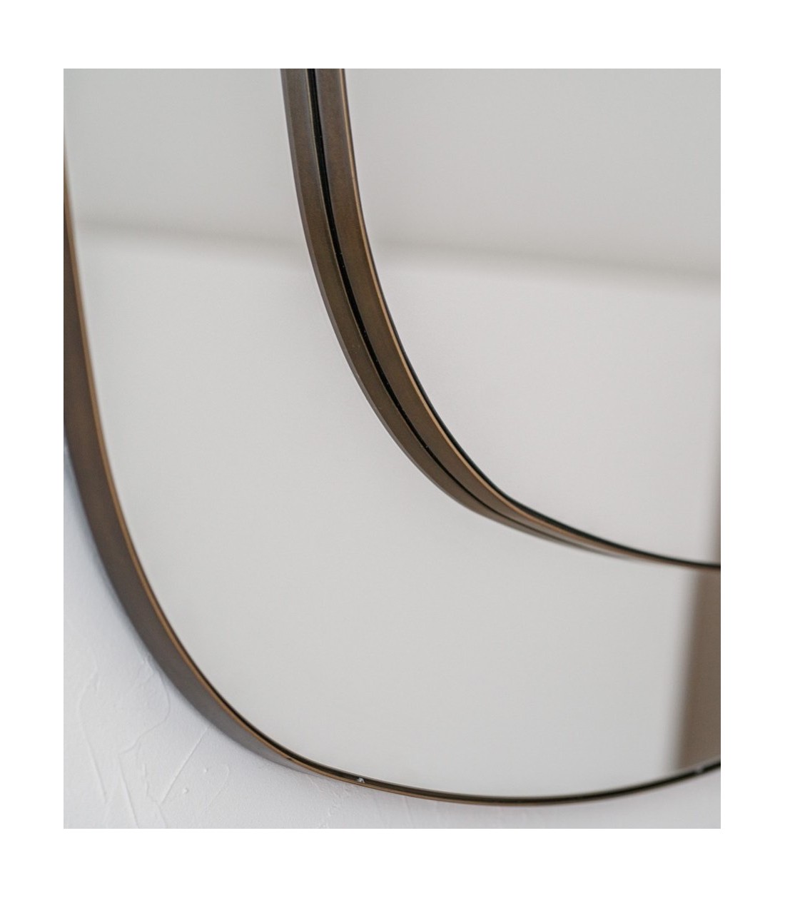 El espejo de pared combina elegancia y originalidad gracias a su diseño sutilmente escultórico y contemporáneo. Consta de dos láminas de espejo paralelas y ligeramente desplazadas entre sí, creando un efecto visual dinámico y atractivo sin perder la armonía de la forma. Su silueta cuadrada, con esquinas redondeadas y lados suavemente curvados, rompe con las líneas tradicionales y aporta fluidez y personalidad al conjunto. El marco metálico con acabado en oro envejecido realza su carácter decorativo, sumando calidez y sofisticación a cualquier ambiente. Perfecto para proyectos de interiorismo que buscan piezas distintivas pero atemporales, este espejo se integra con naturalidad en espacios residenciales y comerciales, como entradas, salones, hoteles boutique o áreas de exposición.