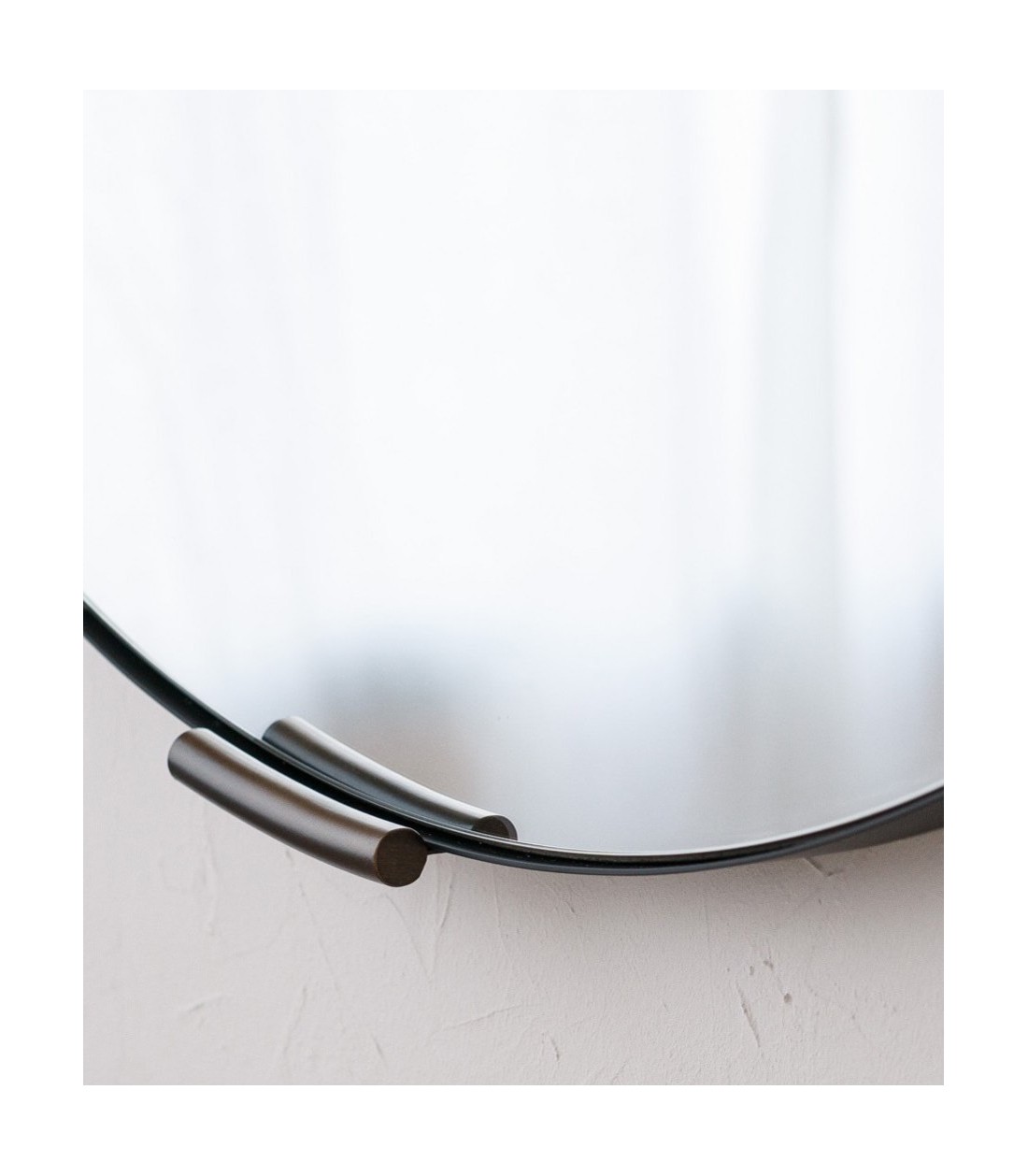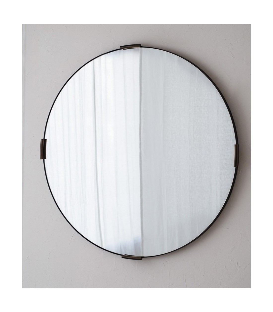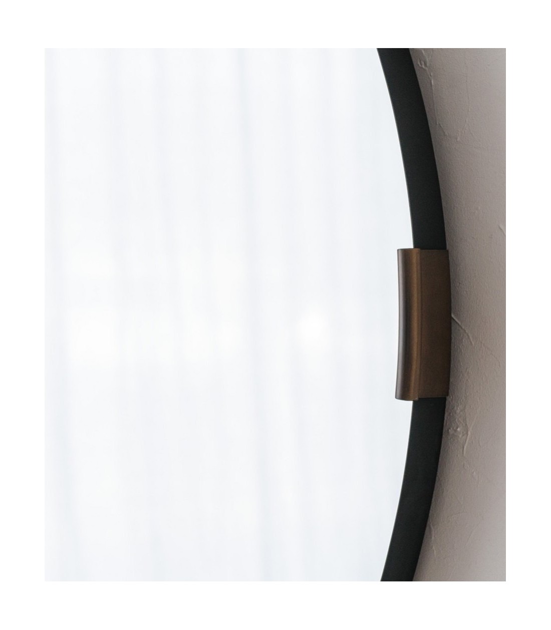 Este espejo de pared redondo de gran formato destaca por su elegancia sobria y su cuidado diseño. Su marco metálico acabado en negro define el contorno con fuerza y simplicidad, mientras que los detalles en oro envejecido, situados estratégicamente en los centros del marco, añaden un sutil contraste decorativo que realza su presencia. El espejo se encuentra ligeramente retrasado respecto al marco de 6 cm, generando una sensación de profundidad que potencia su efecto visual. Esta combinación de materiales y acabados convierte la pieza en una opción ideal para proyectos de interiorismo que buscan equilibrio entre funcionalidad y estética. Perfecto para salones, recibidores o zonas comunes de hoteles y residencias, se integra con naturalidad en ambientes contemporáneos, clásicos renovados o de estilo industrial.