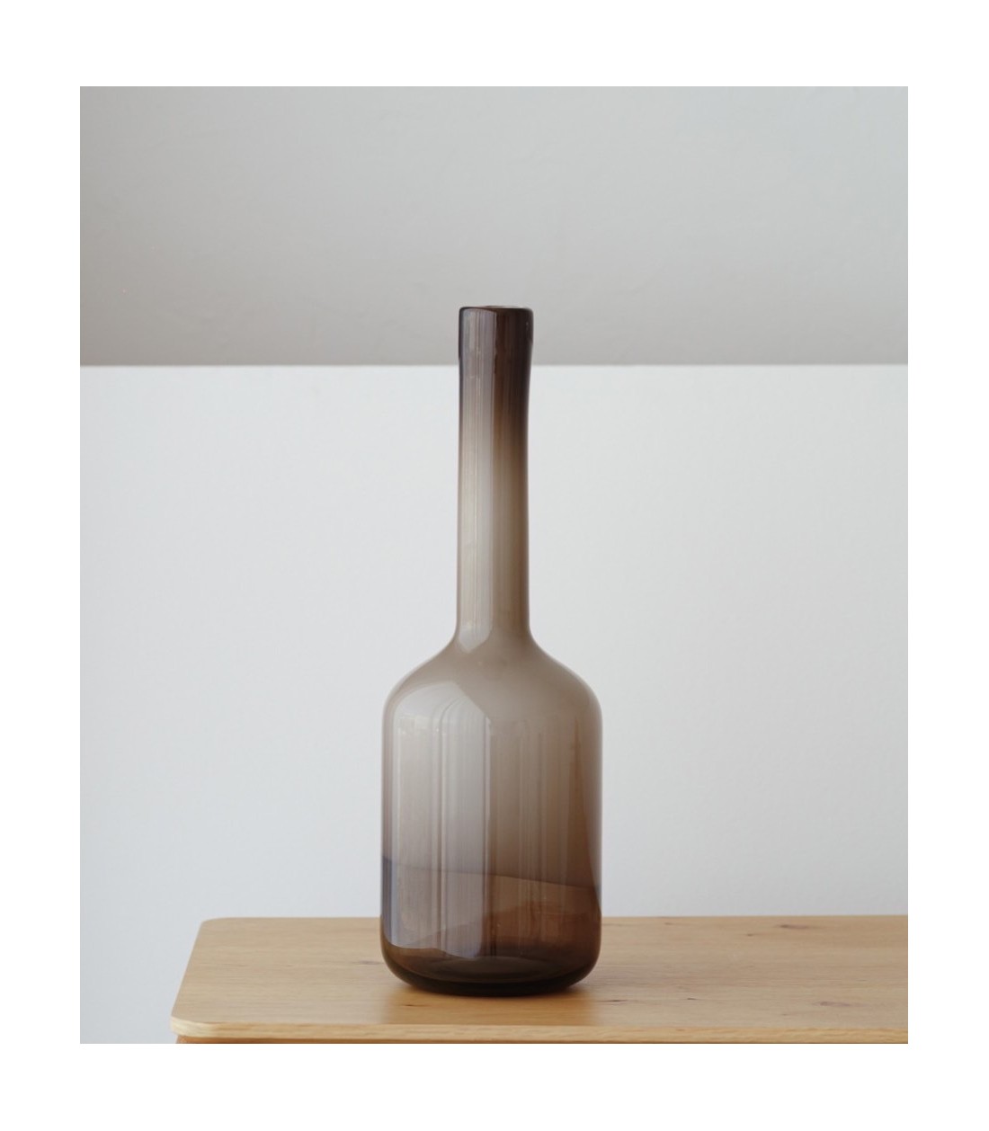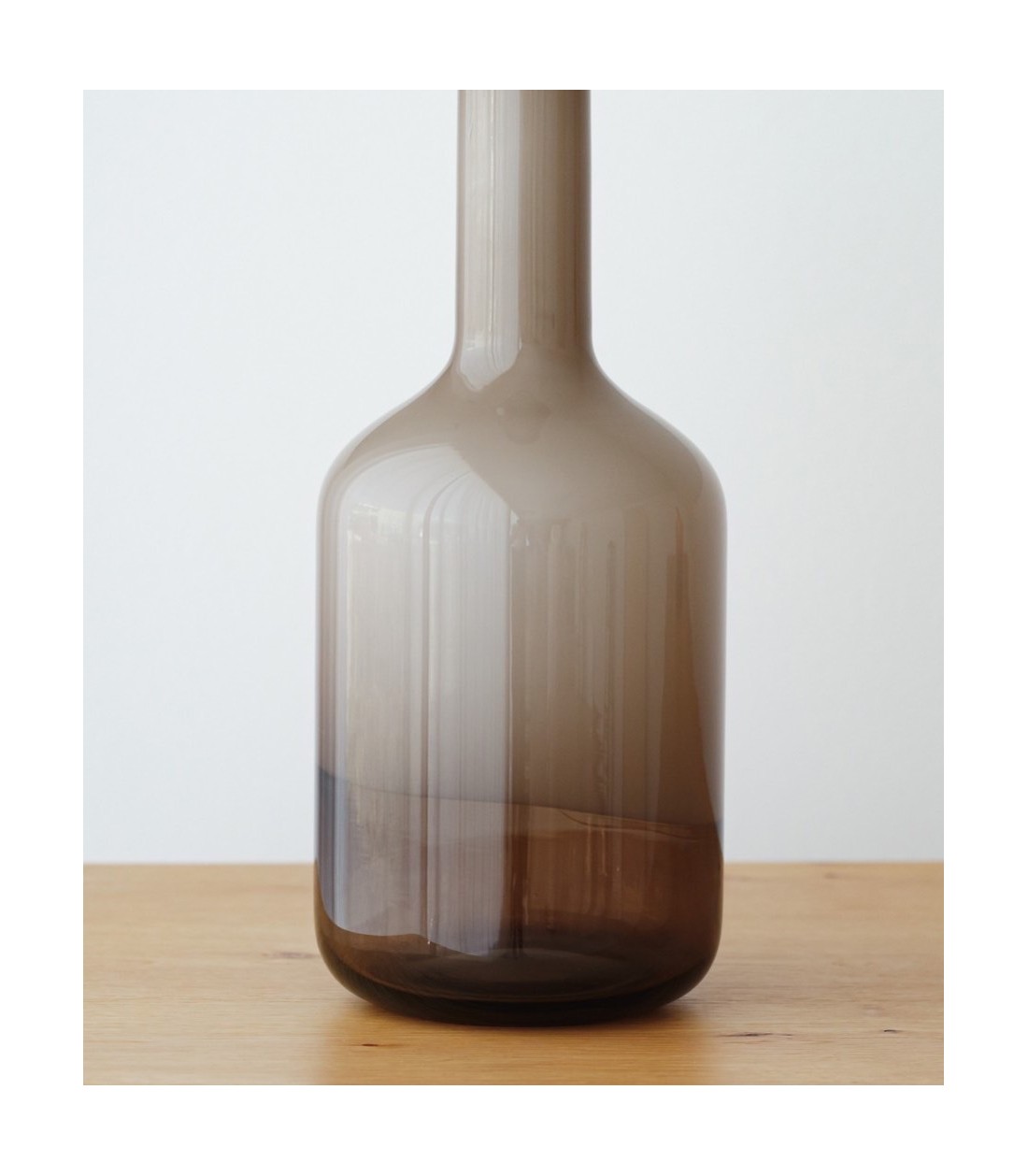 La botella decorativa Xela está realizada en vidrio color gris, combinando líneas simples con una estética contemporánea y elegante. Su diseño incorpora diferentes texturas en el vidrio: la parte superior es más opaca mientras que la base se vuelve translúcida, creando un atractivo juego de transparencias que cambia según la luz y el ángulo de visión. Esta pieza atemporal aporta calidez y sofisticación al espacio, convirtiéndose en un elemento decorativo perfecto para mesas, aparadores o estanterías, y añadiendo un toque distintivo y elegante a cualquier ambiente.