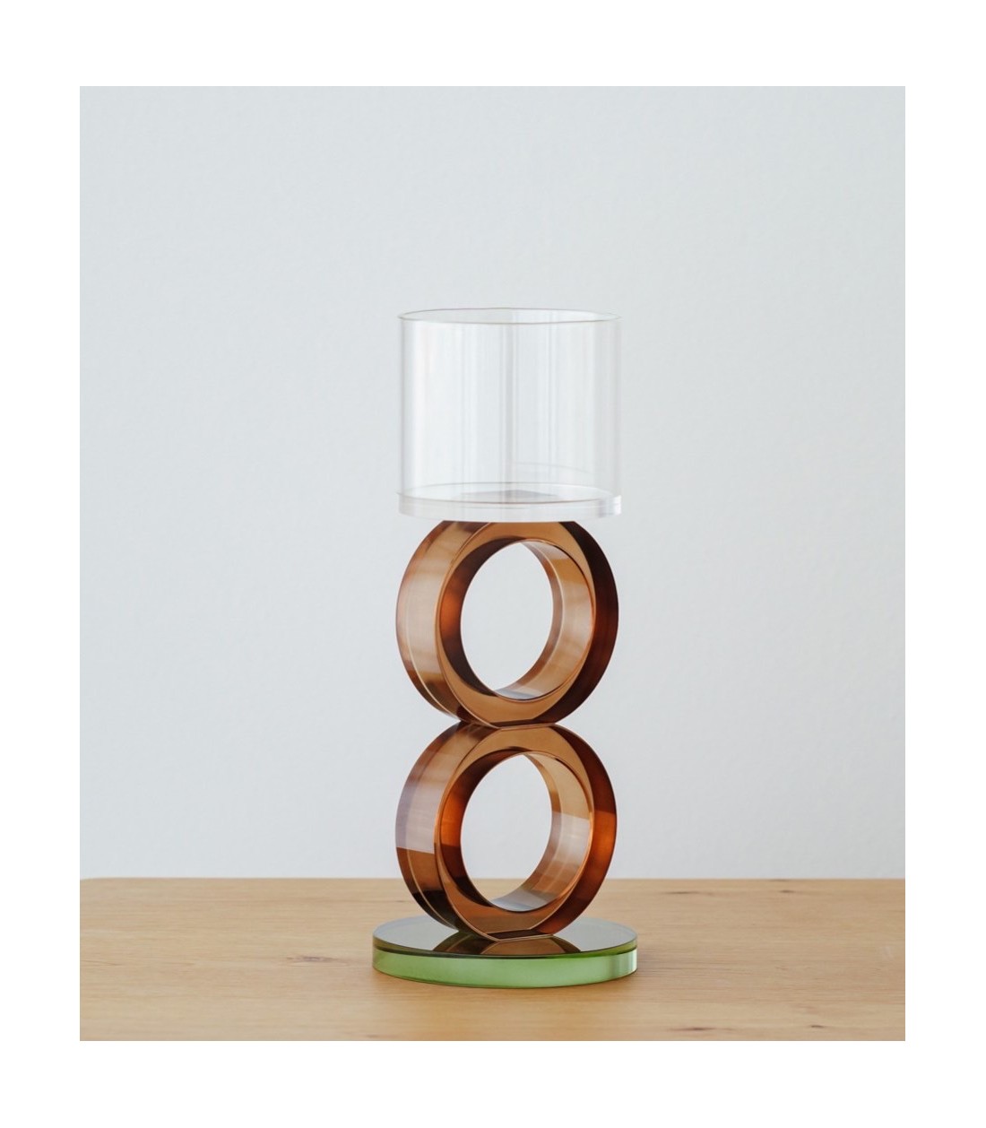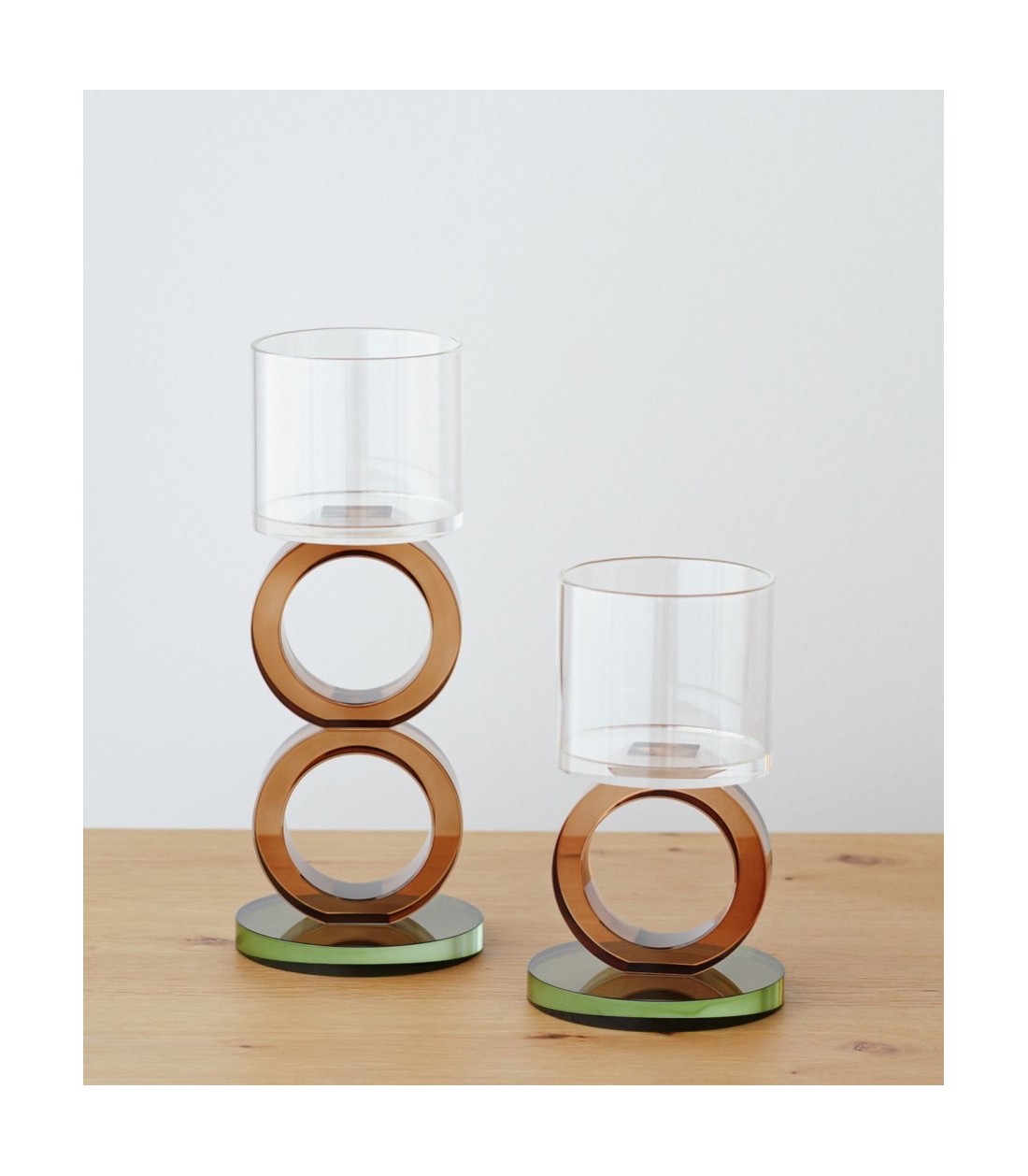 Candelabro Ouro en cristal pulido coloreado, de tamaño grande, que combina tonos ámbar y verde para aportar serenidad y luminosidad a cualquier estancia.
