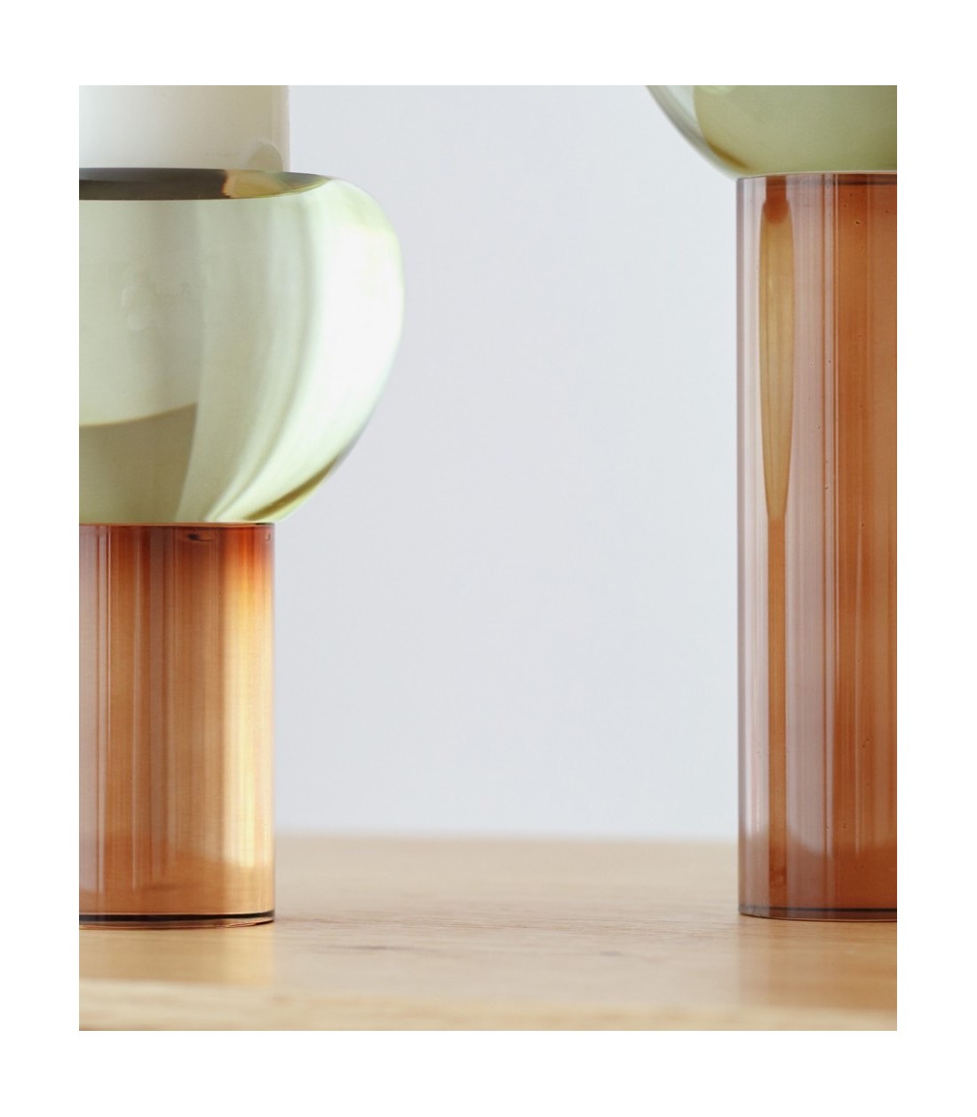 El candelabro Sar está realizado en cristal pulido coloreado, con un diseño que fusiona la calidez del tono ámbar en el cilindro de la base con la frescura del verde aplicado en el volumen esférico de la parte superior. Esta combinación armónica crea una pieza serena y equilibrada, perfecta para llenar de luz y color cualquier estancia. De tamaño pequeño, resulta ideal para aportar un detalle distintivo en salones, comedores, dormitorios o rincones especiales. Cada candelabro es único gracias a las variaciones propias del cristal coloreado, lo que refuerza su exclusividad y carácter artesanal.