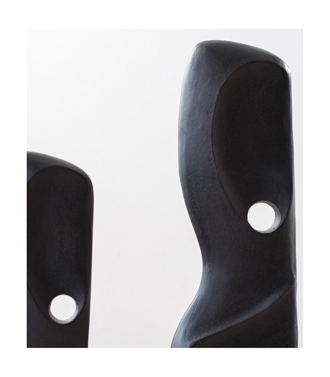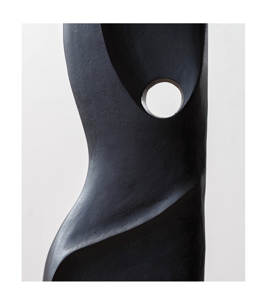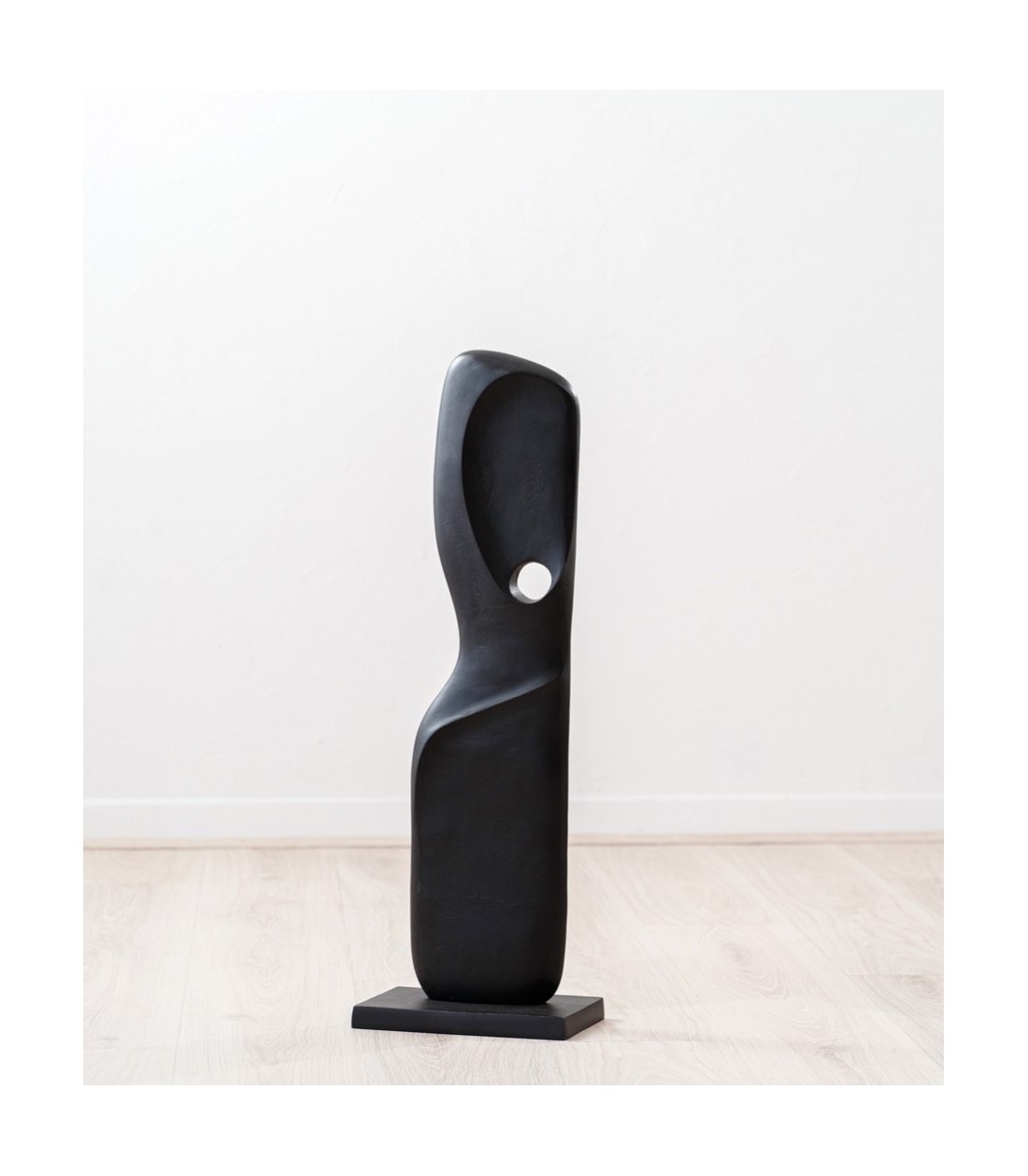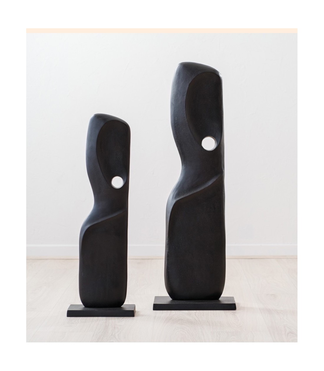 Esta escultura decorativa de diseño abstracto está elaborada en metal con un acabado en bronce oscuro y una textura marcada que resalta su carácter artesanal y único. Su formato vertical y estilizado en tamaño pequeño la convierte en una pieza versátil que se adapta a ambientes contemporáneos, tanto residenciales como comerciales. Diseñada para destacar en entradas, salones, lobbies o espacios corporativos, combina arte y funcionalidad decorativa aportando elegancia y estilo. Puede complementarse con otra escultura similar de mayor tamaño para crear un conjunto armónico. Al tratarse de piezas trabajadas artesanalmente, pueden existir ligeras variaciones entre unas y otras, lo que realza su exclusividad.