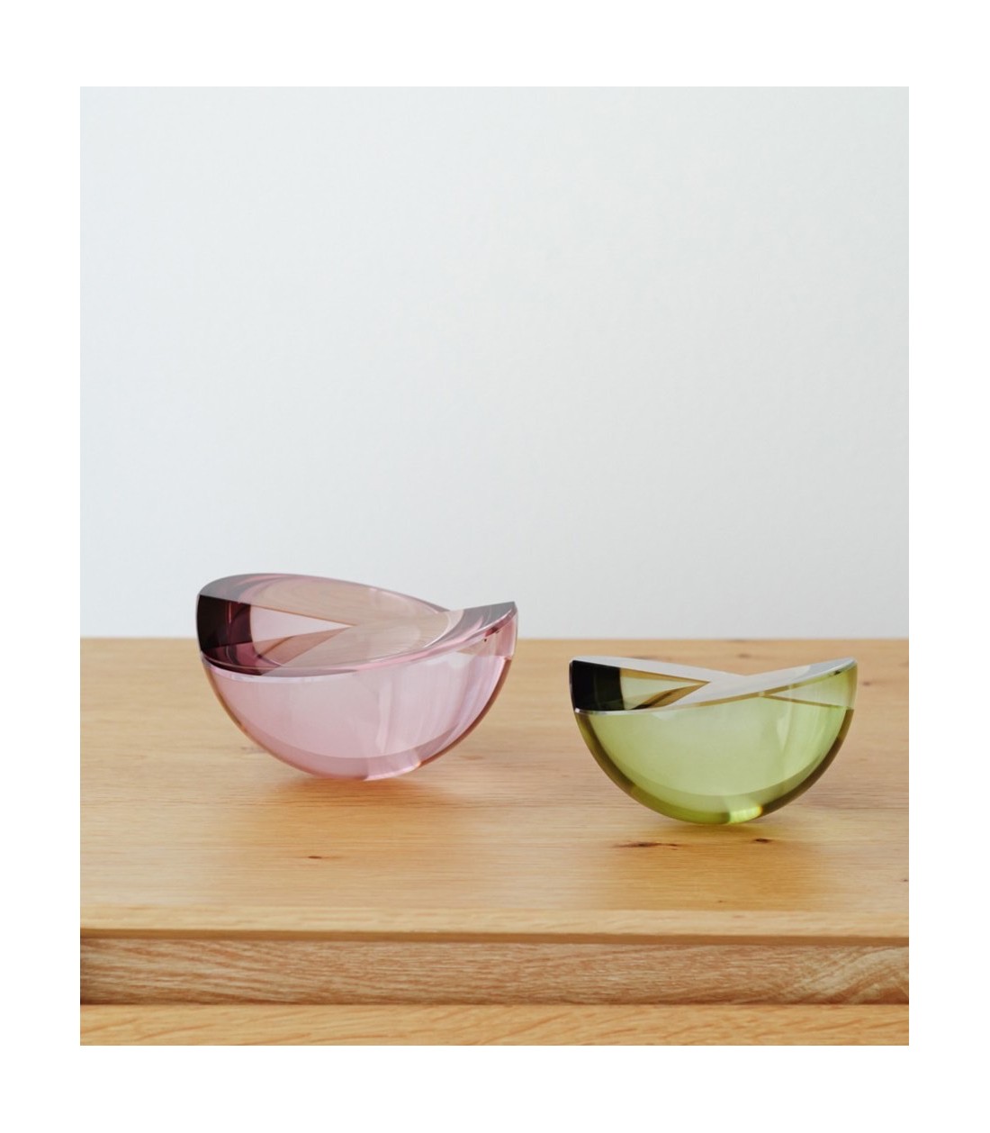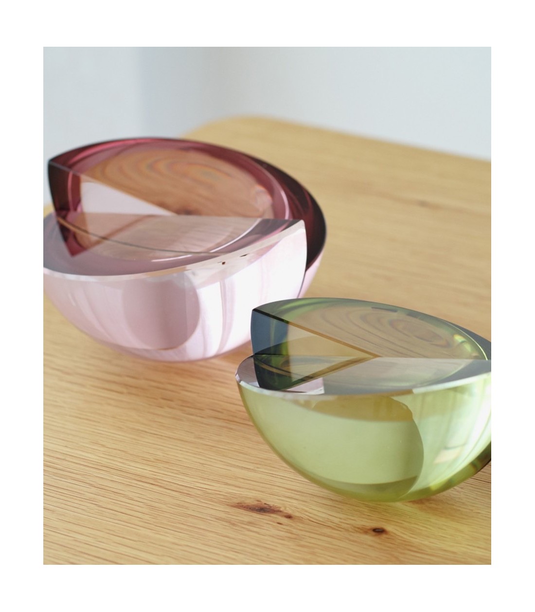Esta pieza decorativa está realizada en cristal pulido coloreado en un tono verde vibrante que aporta frescura y estilo al espacio. Su diseño en forma de semiesfera cortada en dos niveles crea un efecto visual moderno y dinámico, convirtiéndola en un elemento atractivo para cualquier ambiente. Perfecta para decorar mesas, estanterías, consolas o rincones especiales, esta pieza combina elegancia, color y originalidad, aportando un toque contemporáneo y distintivo a la decoración.