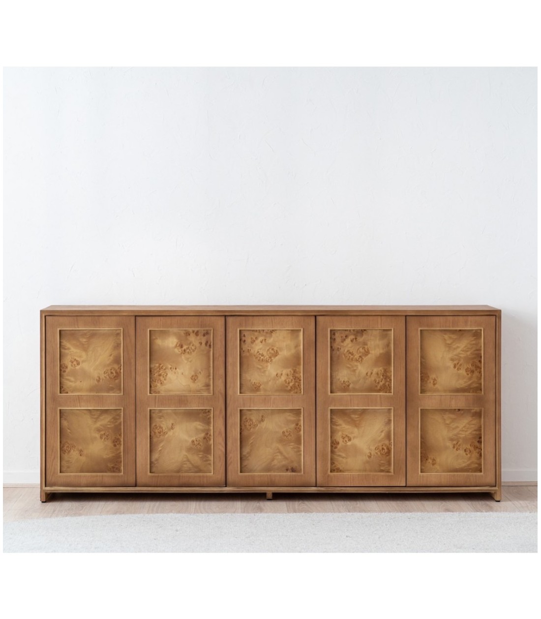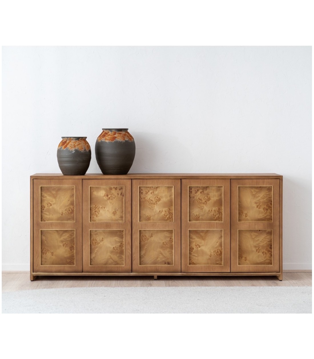 Aparador Terra en DM rechapado en roble natural teñido en tono claro, con cuatro puertas y baldas interiores, de diseño atemporal que combina tradición y modernidad.
