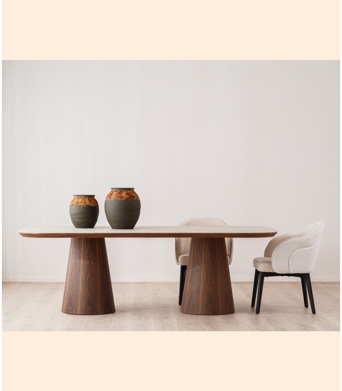 Mesa comedor Dolmen cerámico y nogal - VP Interiorismo