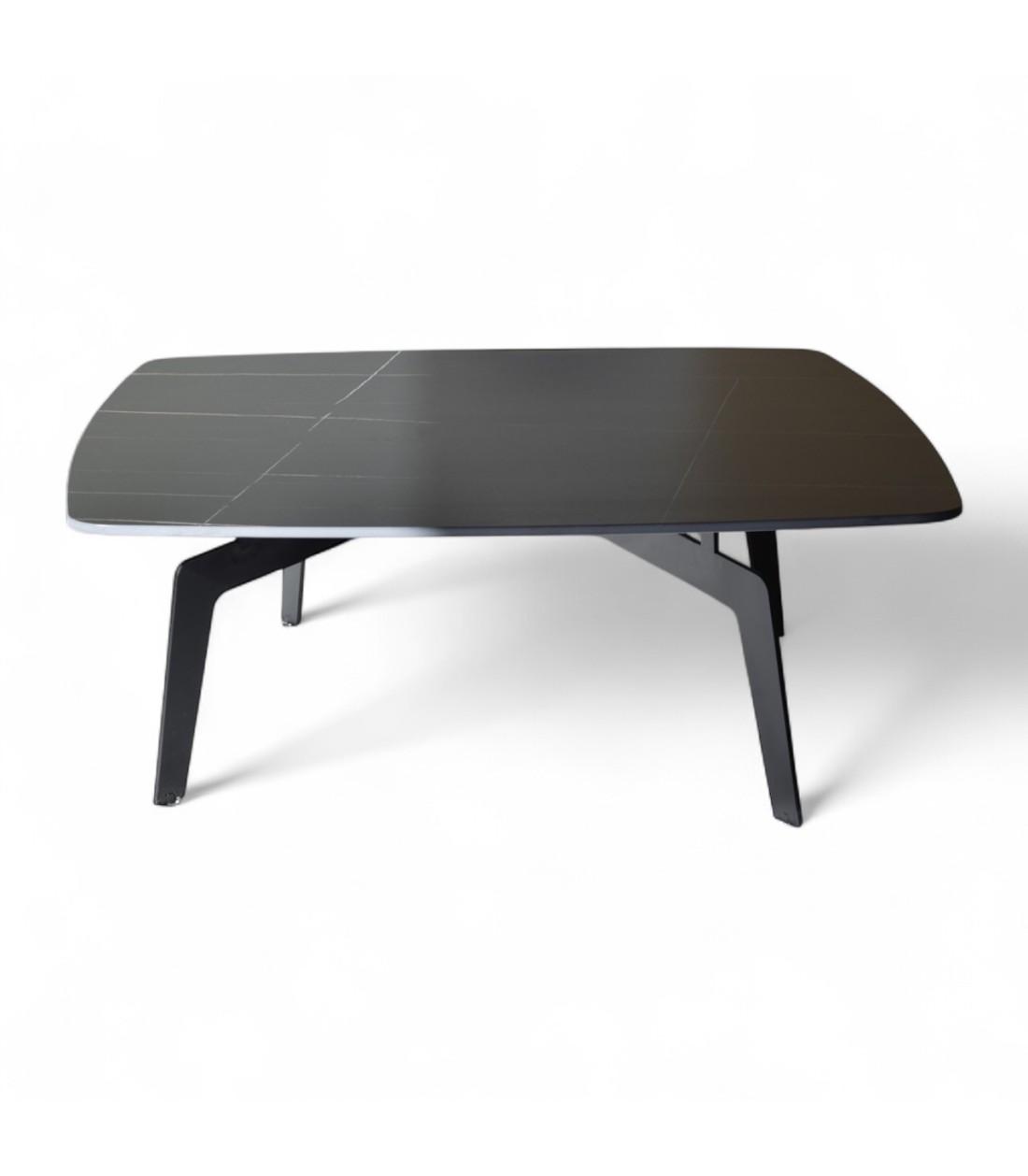 Mesa de centro cuadrada con un diseño sobrio y contemporáneo, ideal para espacios que buscan una estética elegante y con personalidad. Su estructura cuenta con una sólida pata en metal negro que aporta estabilidad y un carácter industrial refinado. El sobre está realizado en piedra sinterizada de color negro con vetas en tonos ocres, lo que le confiere un aspecto sofisticado y natural, con variaciones que hacen única cada pieza. Una mesa versátil y resistente, perfecta como centro funcional y decorativo en salones de estilo moderno o minimalista.