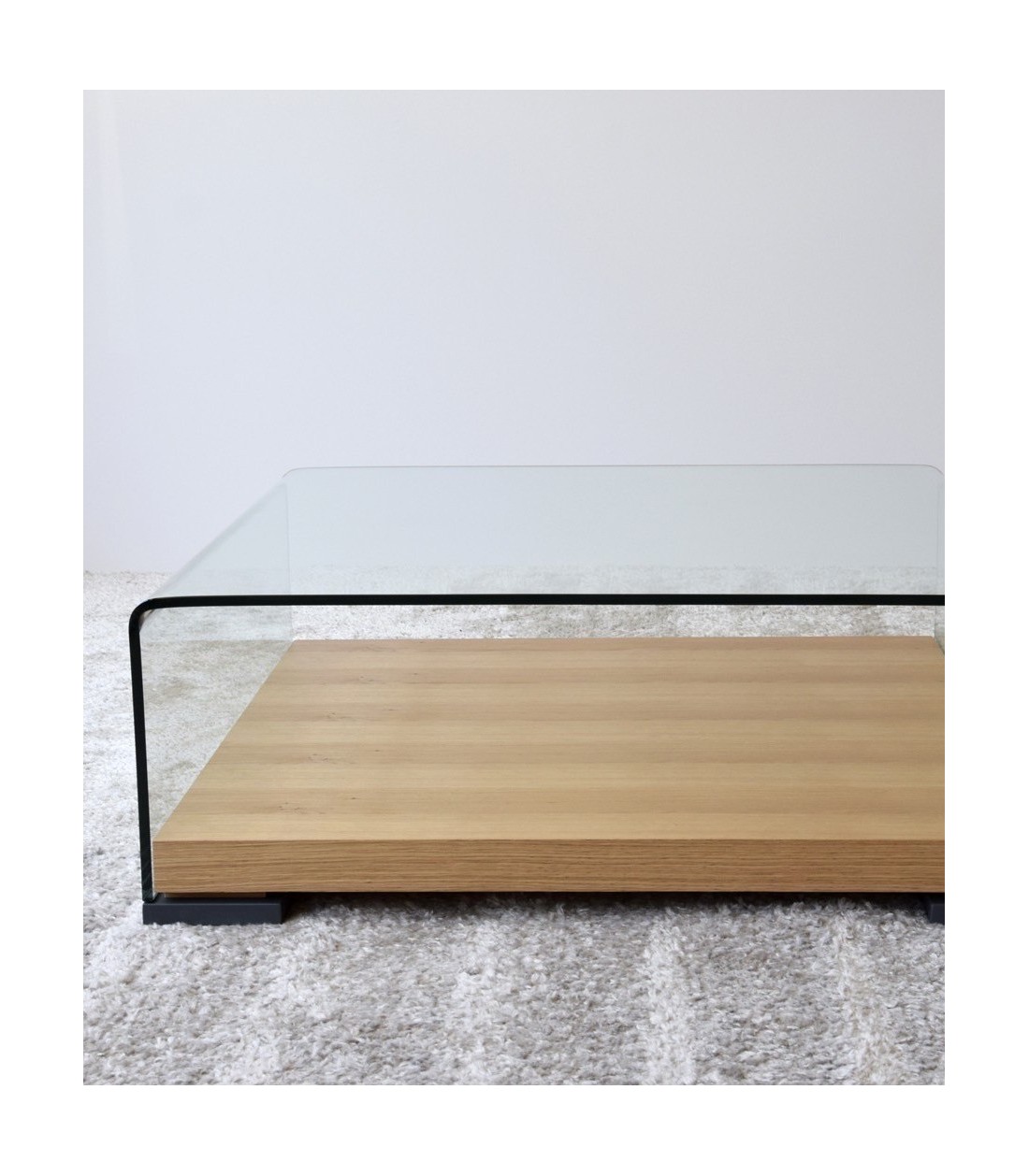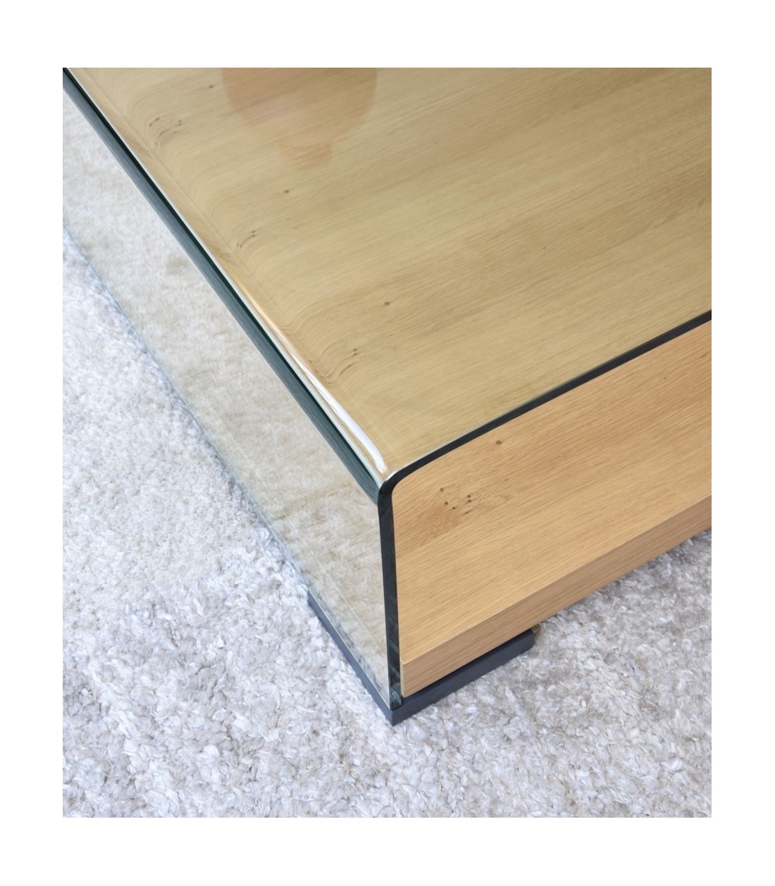 Mesa de centro vidrio templado y roble - VP Interiorismo