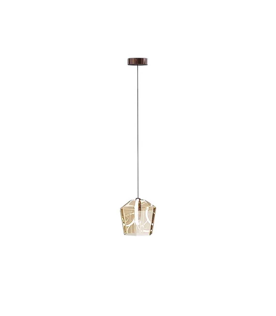 Lámpara colgante de 1 luz en aluminio cepillado bronce oscuro. Tulipa de cristal champán con aro LED interior y difusor de silicona. Incluye tacos de vuelco.