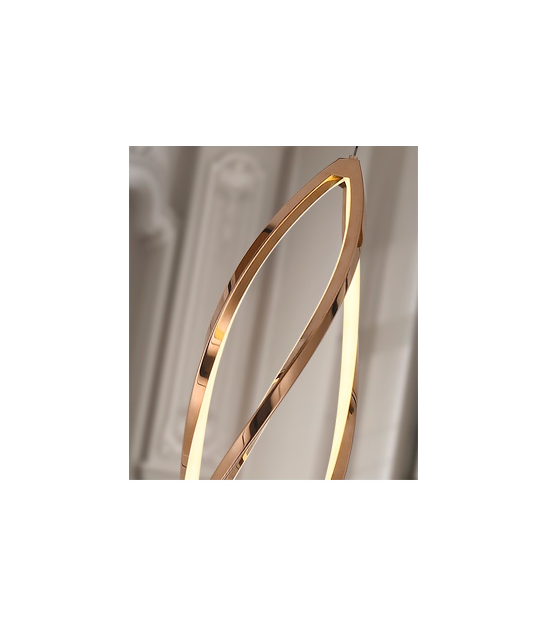 Lámpara de diseño elegante y funcional, fabricada en acero con acabado oro rosa brillo que aporta un toque sofisticado a cualquier espacio. Equipada con difusor acrílico opal, ofrece una iluminación uniforme y agradable. Su tecnología LED de 35 W permite regular la intensidad y la temperatura de color entre 2700 K y 6500 K, proporcionando desde luz cálida hasta fría según las necesidades del ambiente. La altura de la lámpara es ajustable, adaptándose a distintos espacios y usos. Incluye mando a distancia con función dimmer para controlar de forma cómoda tanto la intensidad como el color de la luz, combinando diseño moderno y versatilidad funcional.