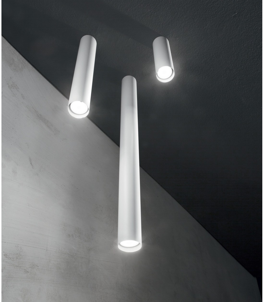 Plafón con base de fijación en aluminio torneado y difusor cilíndrico en metal barnizado al polvo, disponible en acabados blanco o negro. Una pieza de diseño limpio y elegante, ideal para iluminación puntual en ambientes contemporáneos. Utiliza una bombilla LED GU10 (no incluida).